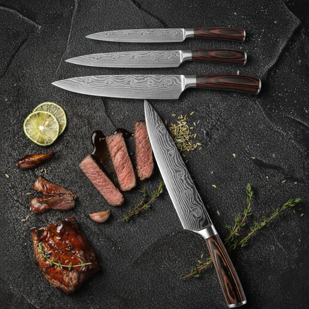 Upplev perfekt balans mellan form och funktion. Dessa exklusiva knivar kombinerar extrem skärpa med ett unikt, handsmitt blad som håller..